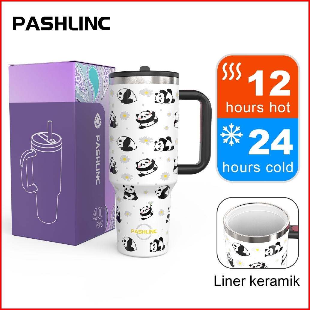 Pashlinc Tumbler Vakum Tahan Panas Stainless Steel 304 Lapisan Keramik Anti Tumpah Dengan Sedotan Mug Berkapasitas Besar