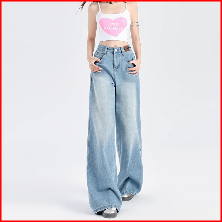Veegirl Celana Jeans Kulot Korean Style Wanita Jeans Highwaist Panjang Loose Celana Bigsize Jumbo Baggy Pants Denim Cela