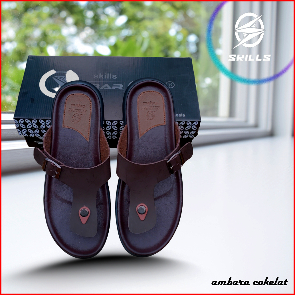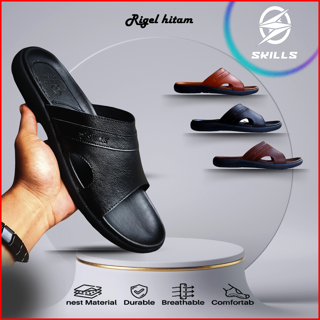 Skills Barqun Miguel - Sandal Pria Casual Kulit Slop Strap Leather Premium