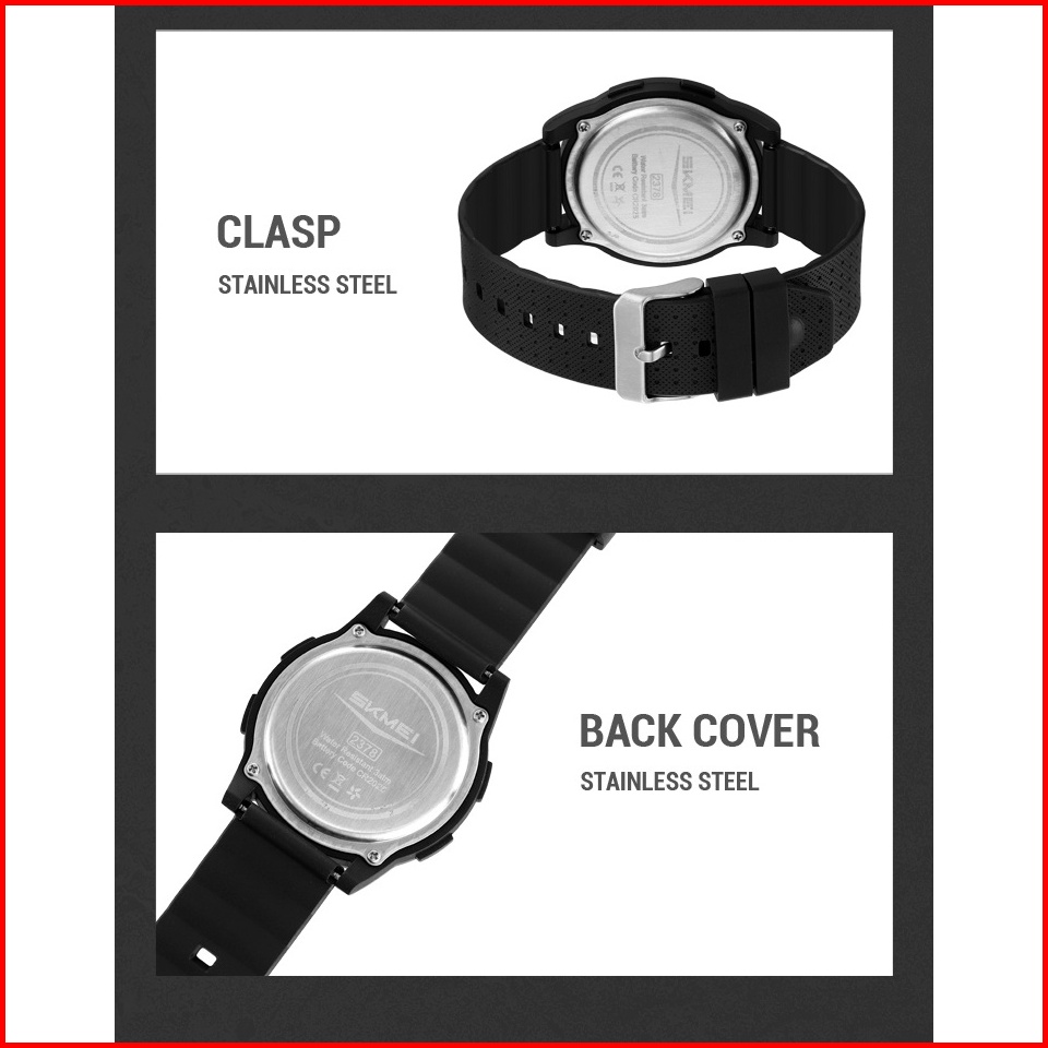 Jam Tangan Pria Digital Skmei 2378 - Black White Water Resist 30m