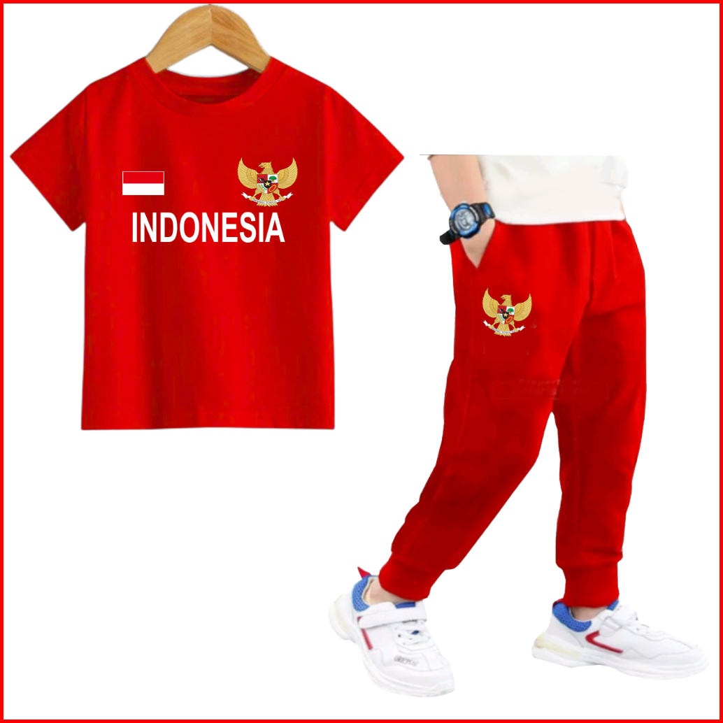 Indonesia Setelan Anak Merah Putih Training Olahraga Laki Laki Perempuan