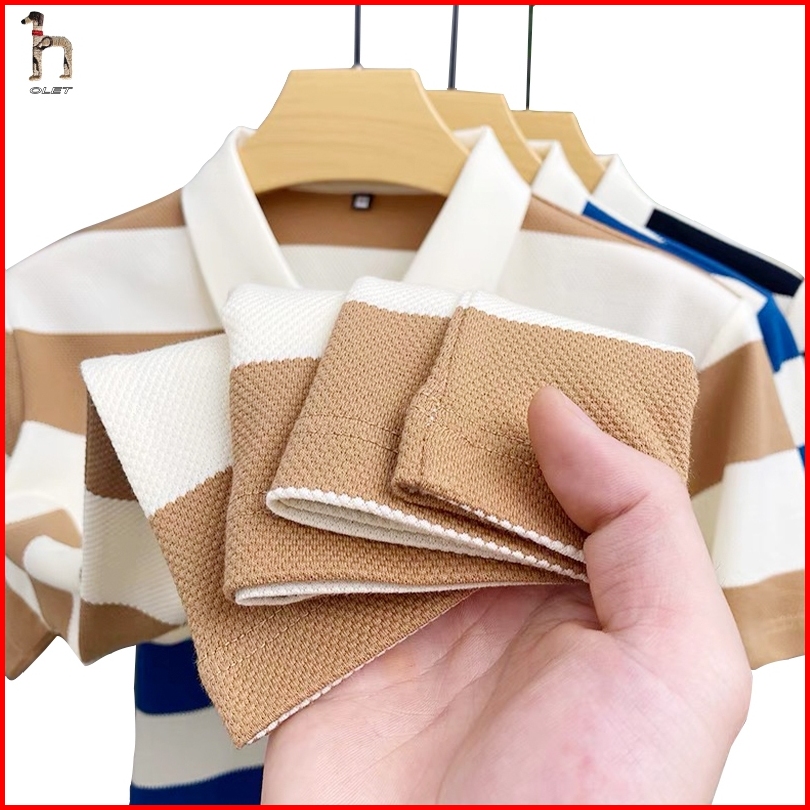 Olet Kaos Polo Pria Premium Berkerah Polos Stripe Katun Polo