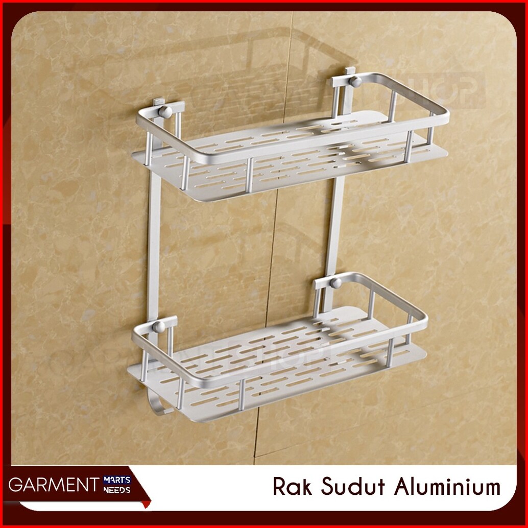 Rak Sudut Kamar Mandi Aluminium 2 Tingkat Sabun Dinding Gantung Dapur