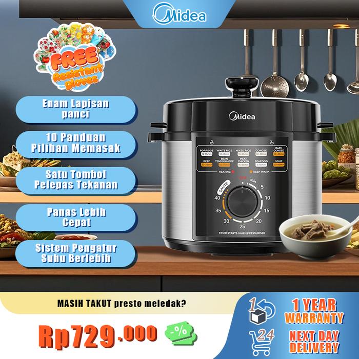 Midea Electrical Panci Presto 5L - Mpm50010Amg - Membagikan Hadiah Gratis-6 Layer Inner Pot / 11 In 1