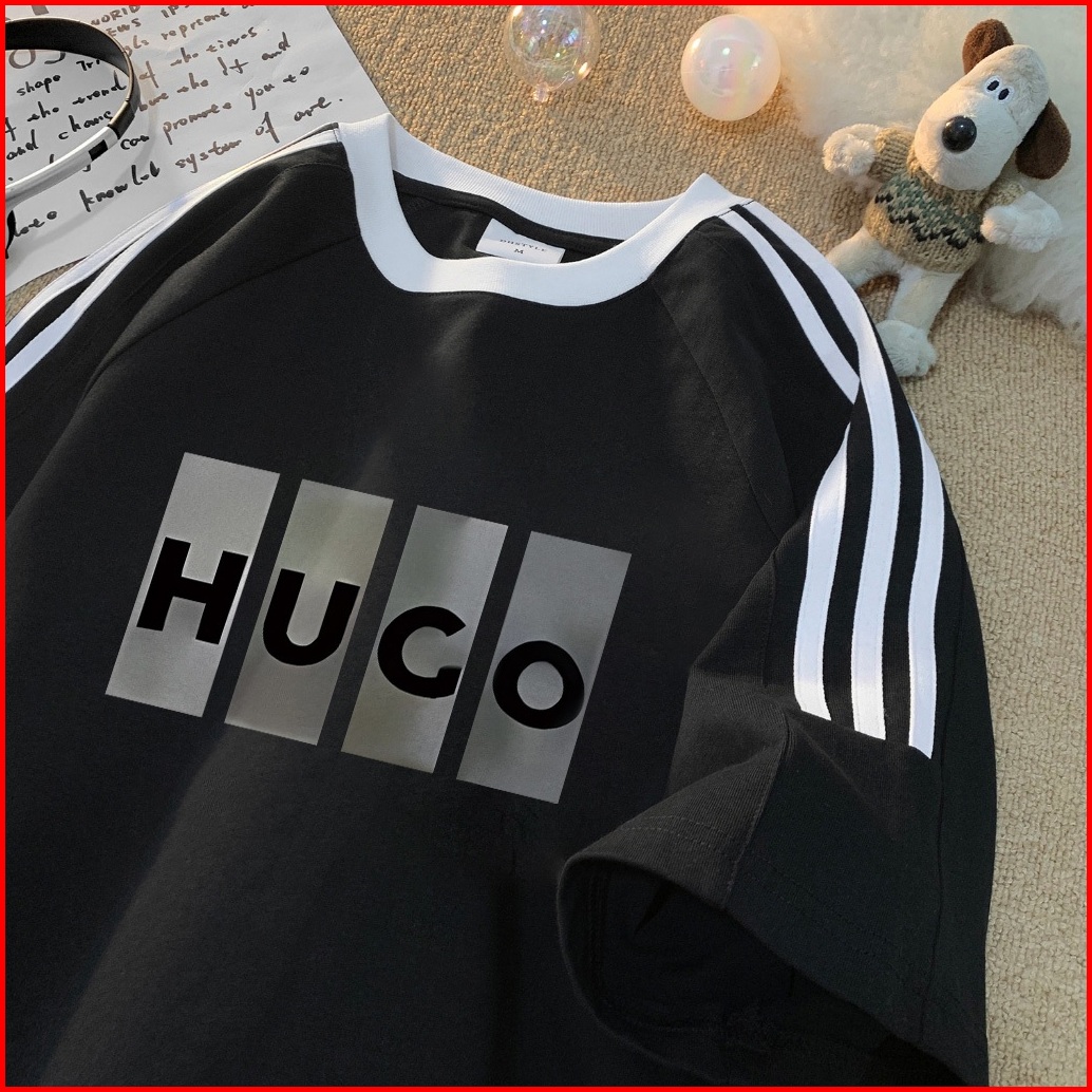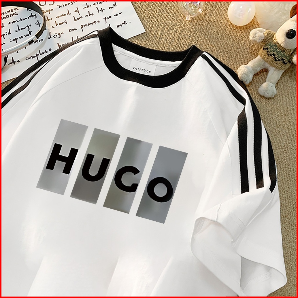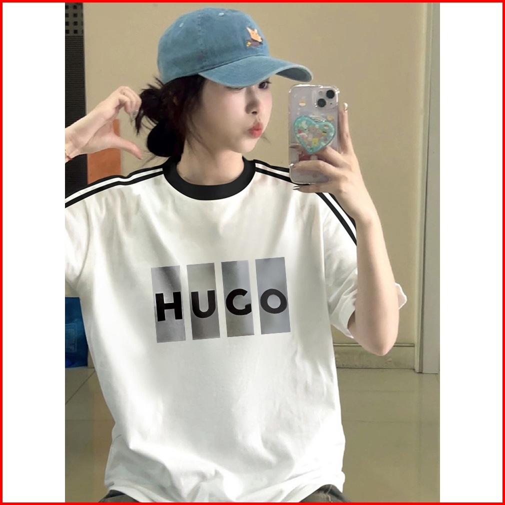 Forteid Cetakan Merek Trendi Retro Baju Oversize Huco Cetak Pola Huruf Korean Style Kaos Longgar Kaos Merah Putih Agustu