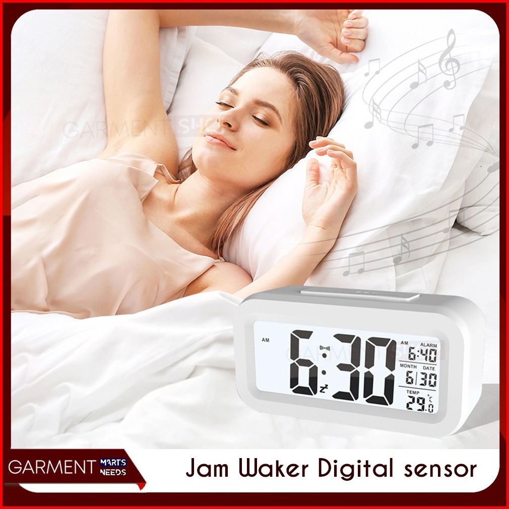 Jam Waker Digital Led Light Clock Meja Kamar Smart Alarm Sensor Light Snooze Suara Dering