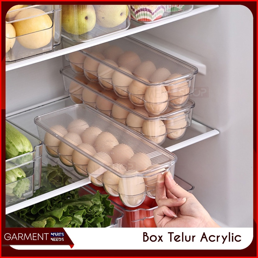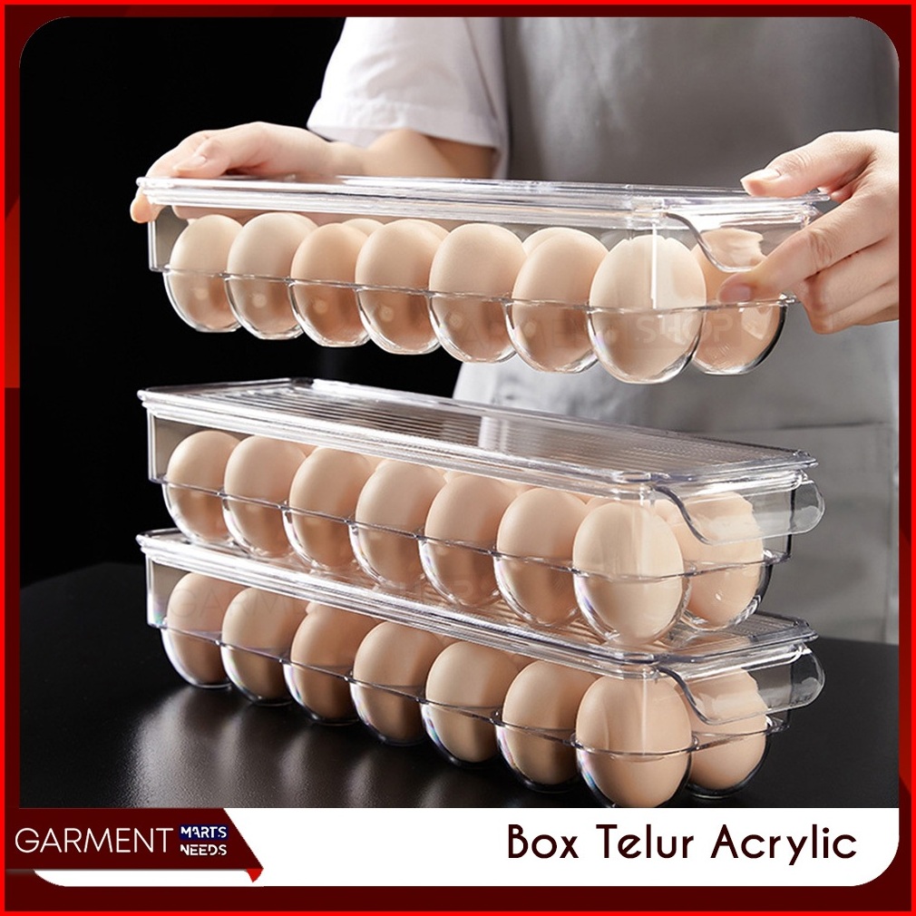 Box Telur 21 Lubang Akrilik Transparan Penyimpanan Telor Kulkas Storage Egg Shelf Tutup Rapat