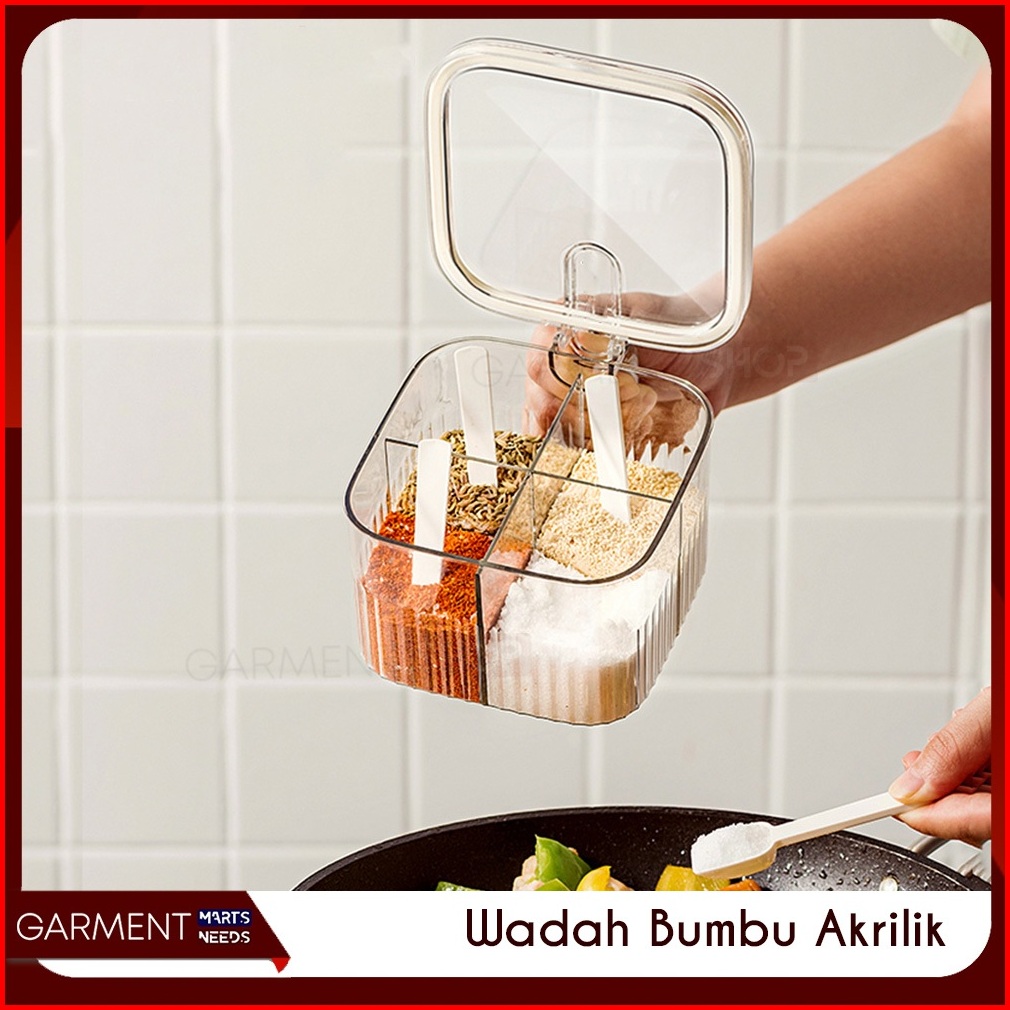 Toples Bumbu Dapur 4 Sekat Handle Buka Tutup Minimalis Seasoning Jar Box Spices Transparan