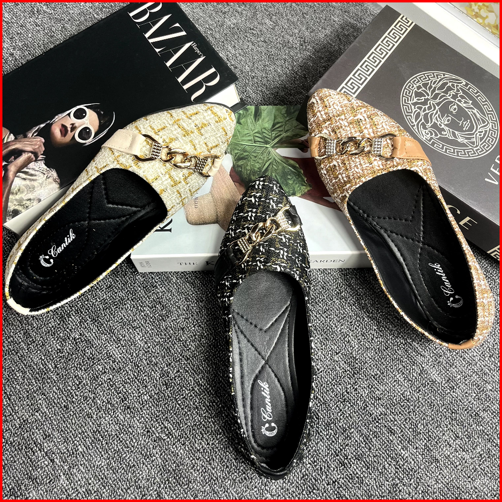 Mhr Grosir Flatshoes Wanita Ballerina Premium Tali Aksen Rantai Casual Korean Style