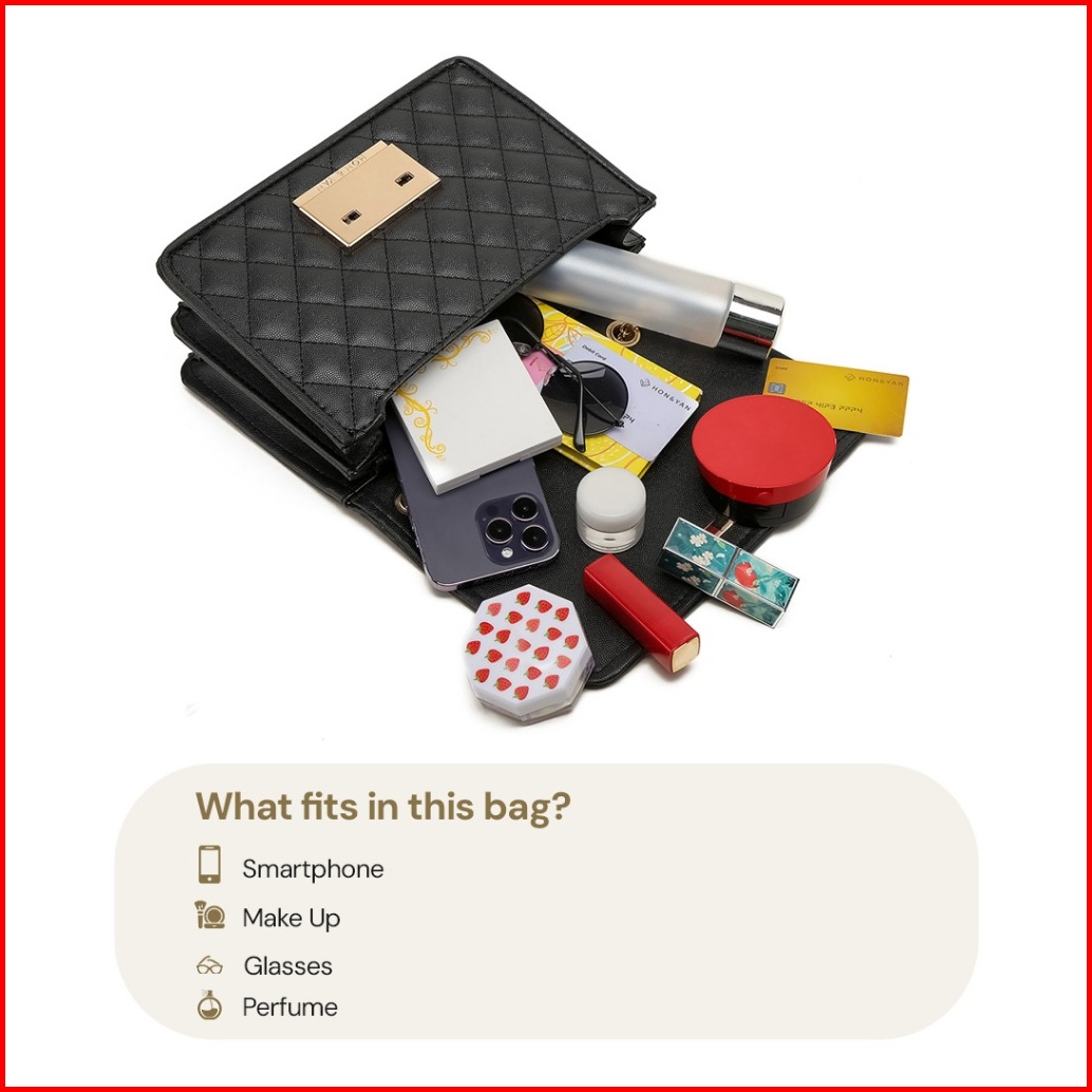 Free Gift Honyan Premium Tas Selempang Wanita Import Branded Ori - Louis Quilted Chain Sling Bag