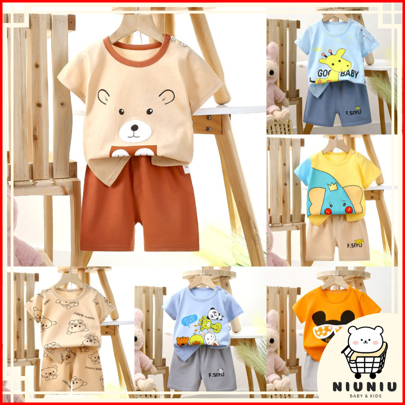 Niuniu Setelan Anak Bayi 0 6 Tahun Baju Anak Kaos Piyama Lengan Pendek Baju Tidur Anak Laki Laki