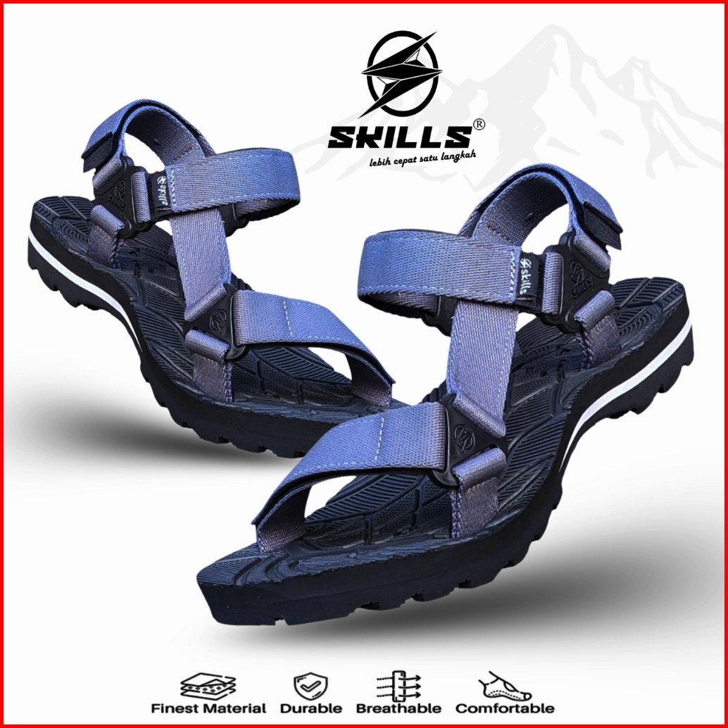 Skills Barqun Mountrack - Sandal Gunung Pria Wanita Polyester Strap 2.5 Black Original