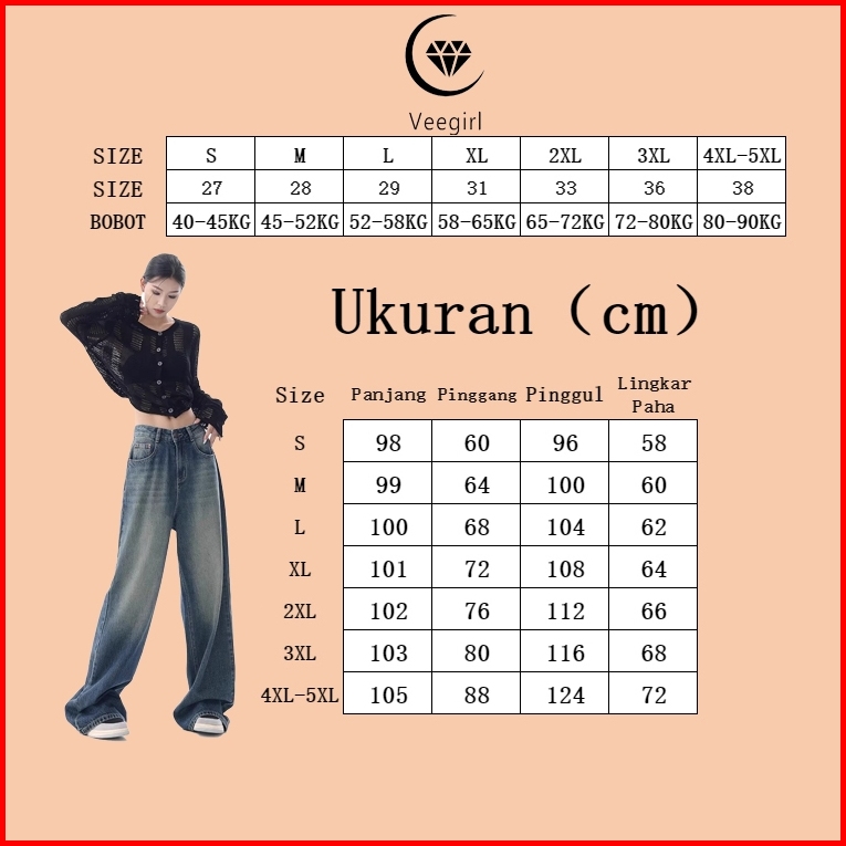 Veegirl Celana Jeans Baggy Jumbo Korean Style Wanita Jeans Highwaist Panjang Kulot Celana Jeans Loose Wied Leg Casual Ce
