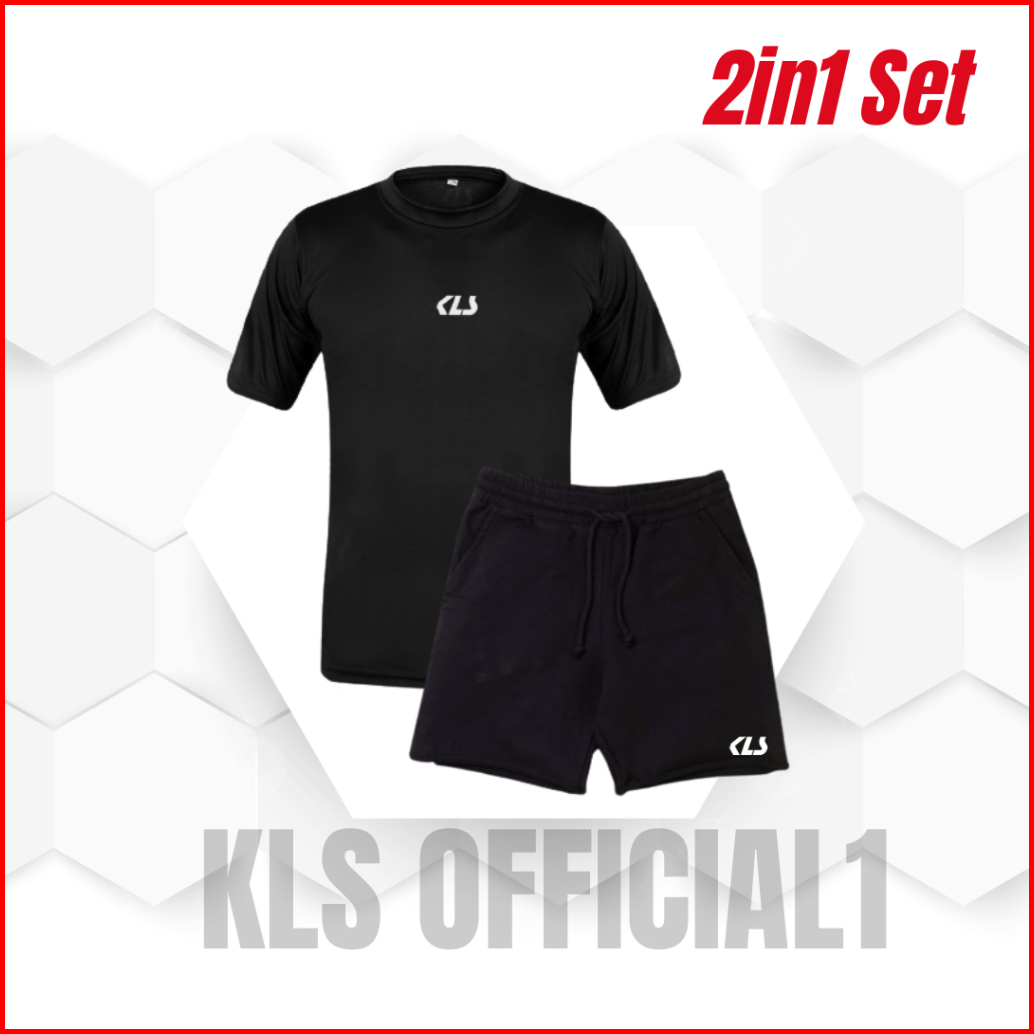 Stelan Olahraga Running Futsal Jogging Gym Paket Manset Lengan Pendek Dan Celana Kls Sport
