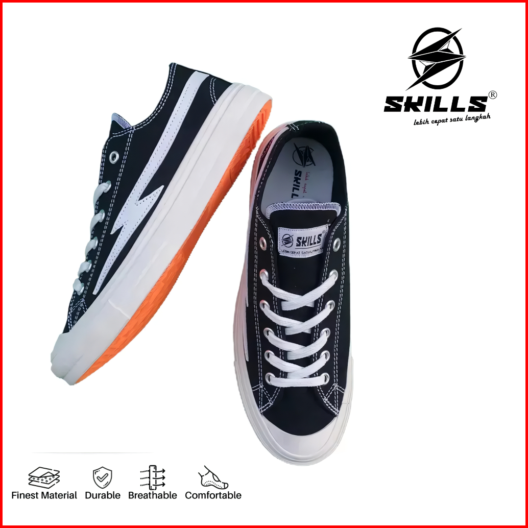 Skills Barqun Enjoy Sepatu Sneakers Casual Pria Wanita - Classic Low Black White Sepatu Original