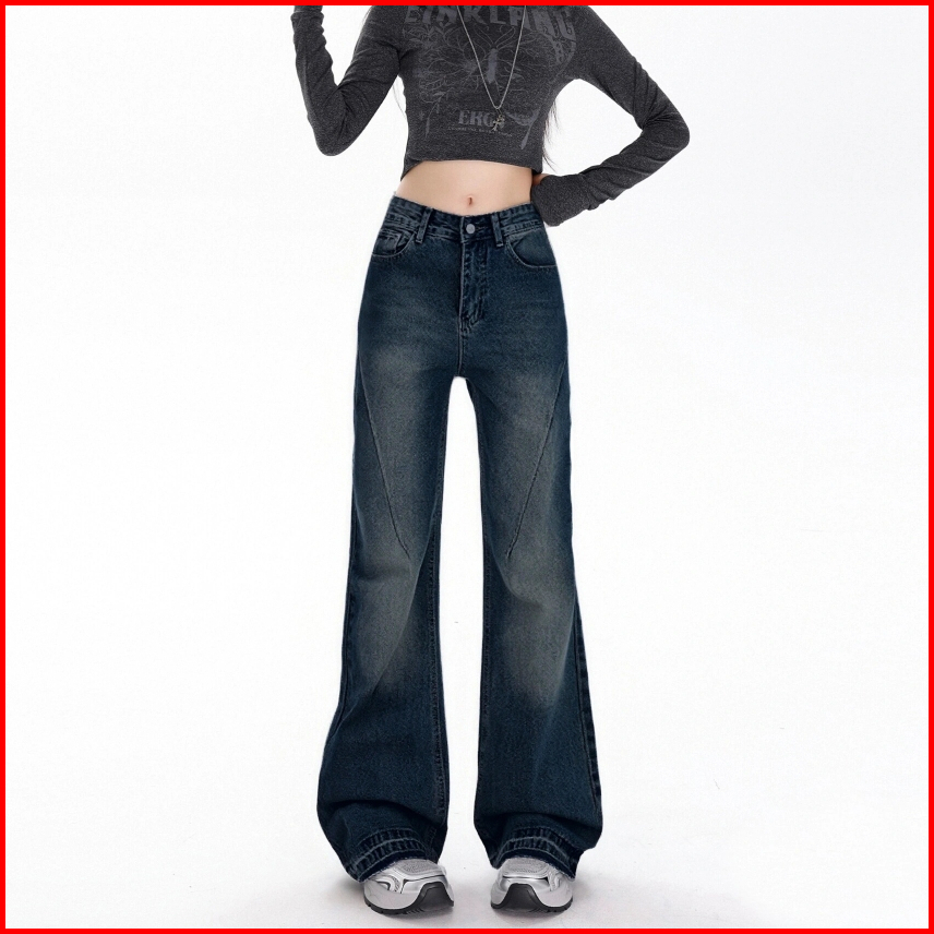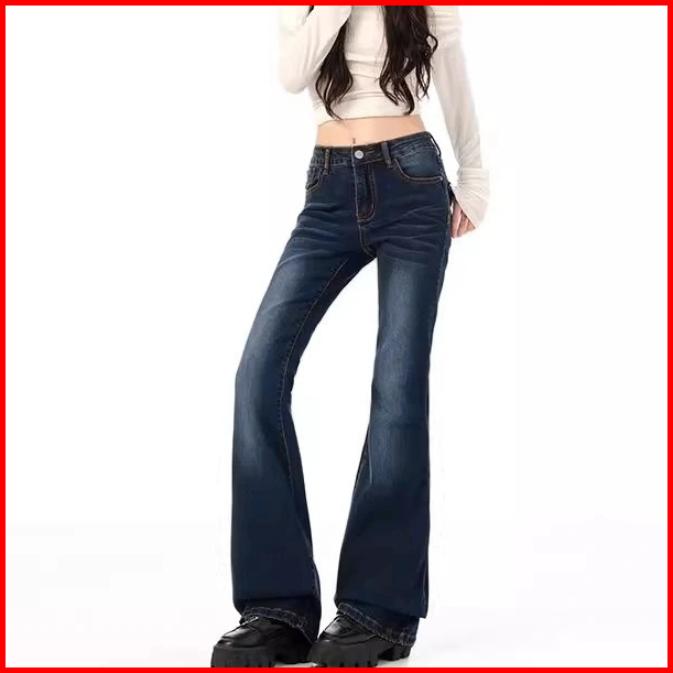 Veegirl Celana Jeans Wanita High Waist Flare Panjang Model Korea Slim Fit Cutbray Denim Stretch Modern
