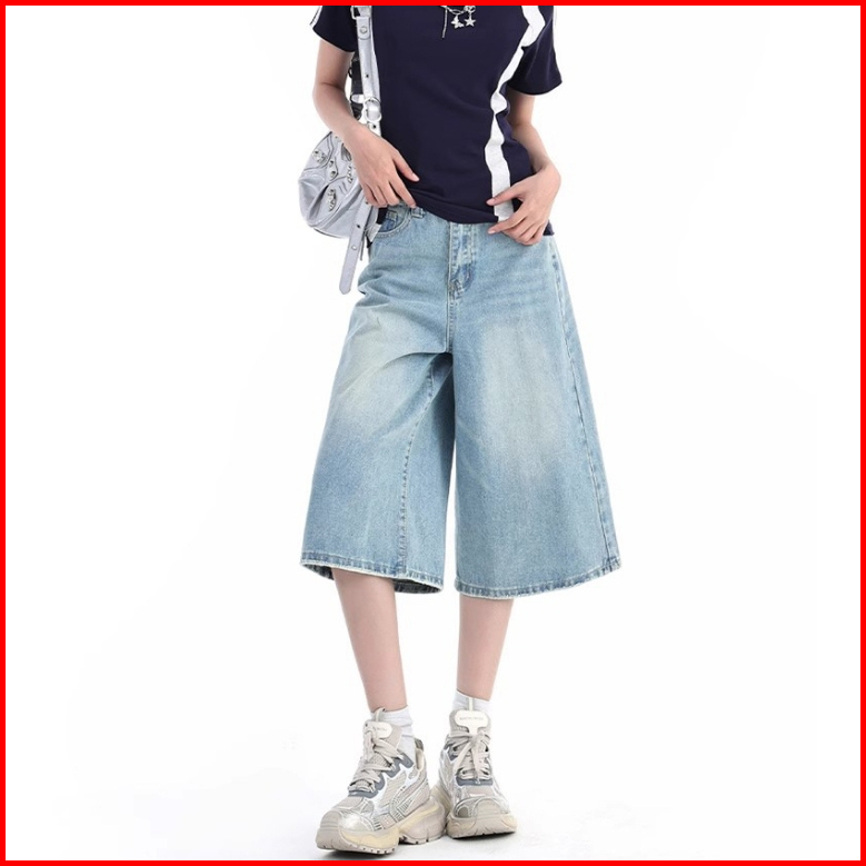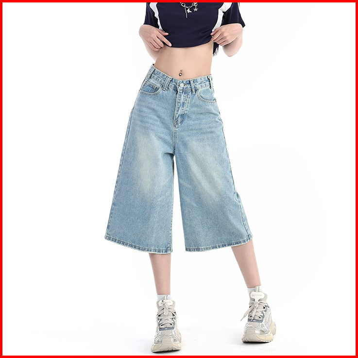 Veegirl Celana Jeans Wanita Kekinian High Waist Pendek Korean Style