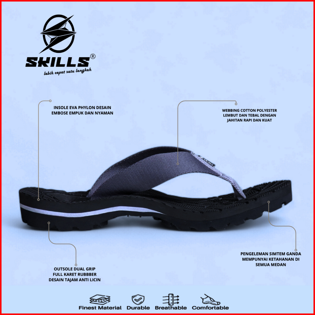 Skills Barqun Sandal Gunung Pria Wanita Sendal Outdoor Jepit Original Abu Abu - Ringan Anti Licin