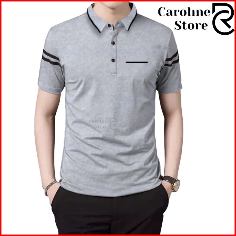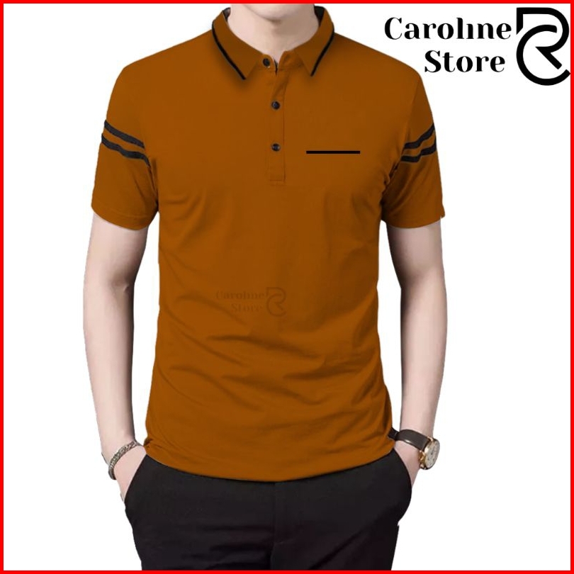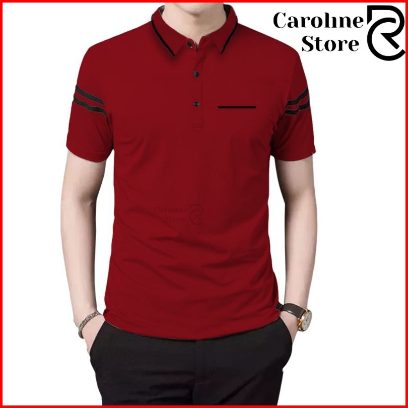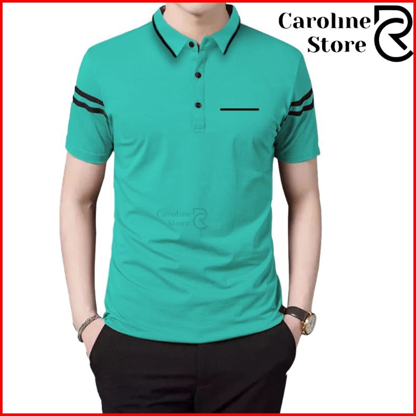 Kaos Polo Kerah Daun Saku Lengan Garis Pendek
