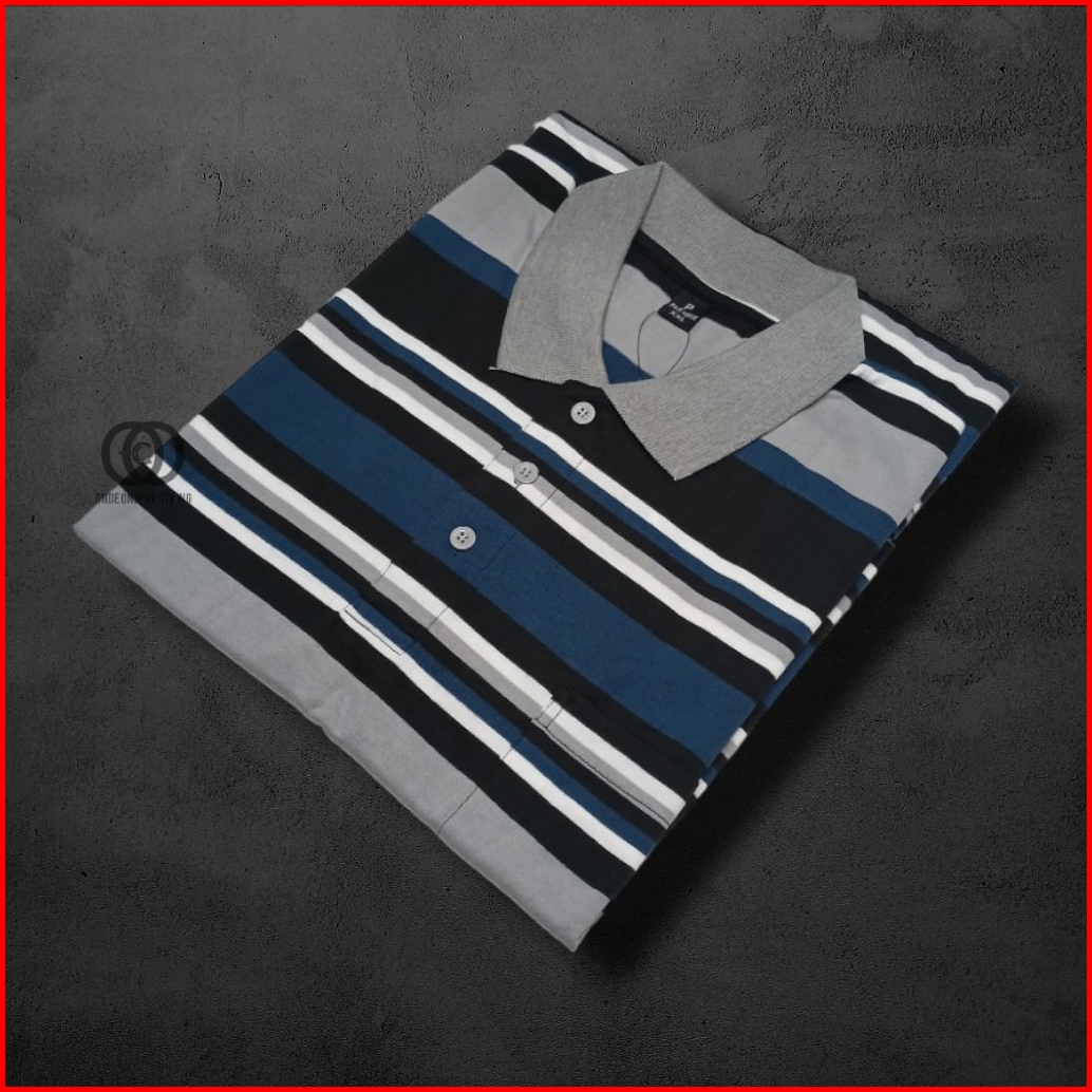 Baju Kaos Kerah Salur Motif Garis Garis Afada Lengan Pendek Salur Wangkir Bapak Bapak Berkerah Ada Saku