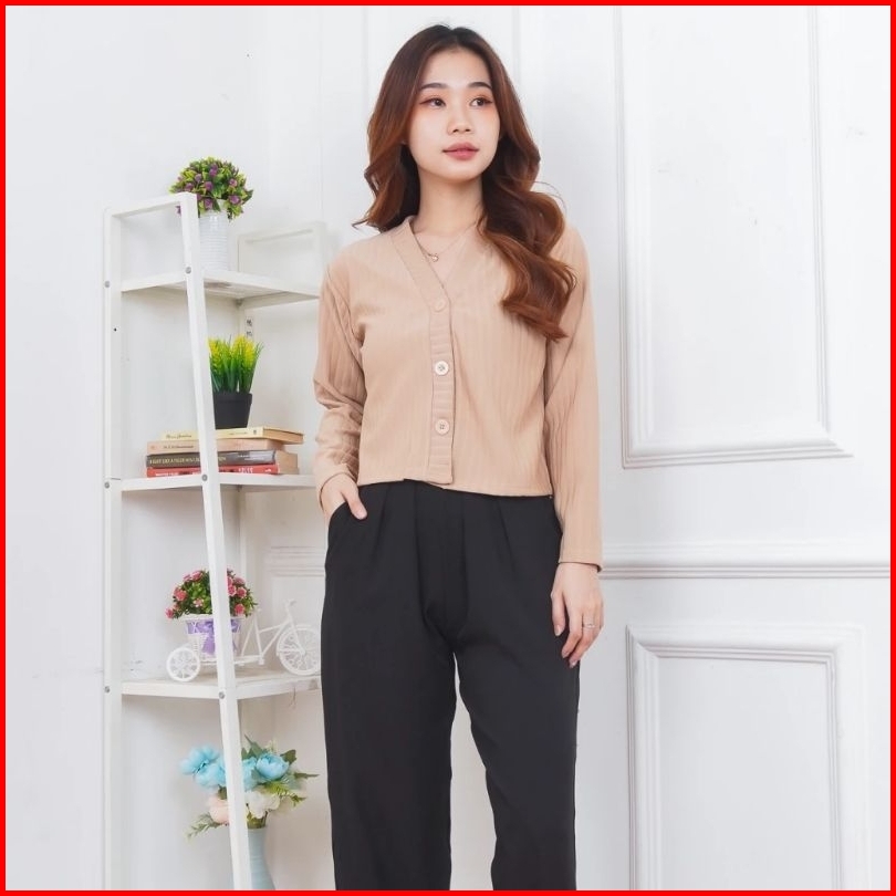 Akemi Hornet Knit Crop Cardigan Wanita Outer Top Knitwear Premium