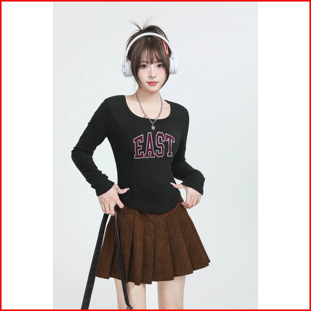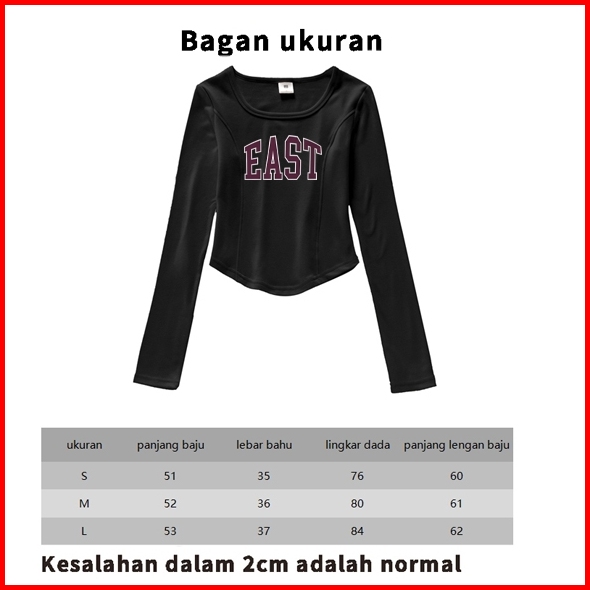 Forteid Kaos Lengan Panjang Leher Persegi Baju Kaos Wanitacetak Surat Kaos Wanita Crop Top Korean Style Cashmere Baju At