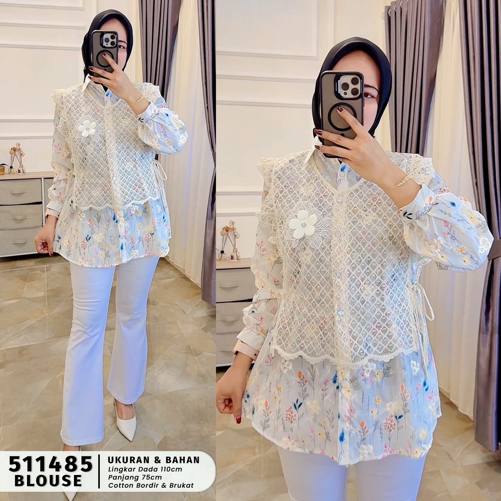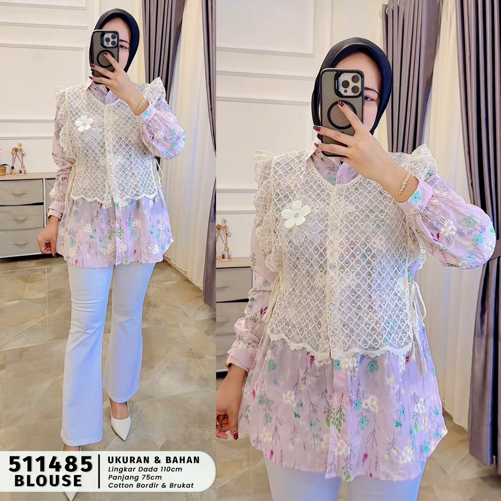 EXTU HERITAGE – Zahra Blouse Motif Best Seller Kombinasi Brukat | Blouse Muslimah Elegan Fit to XL - 511485