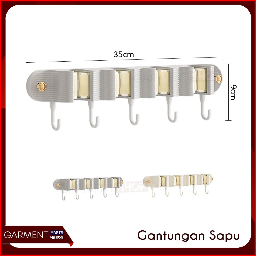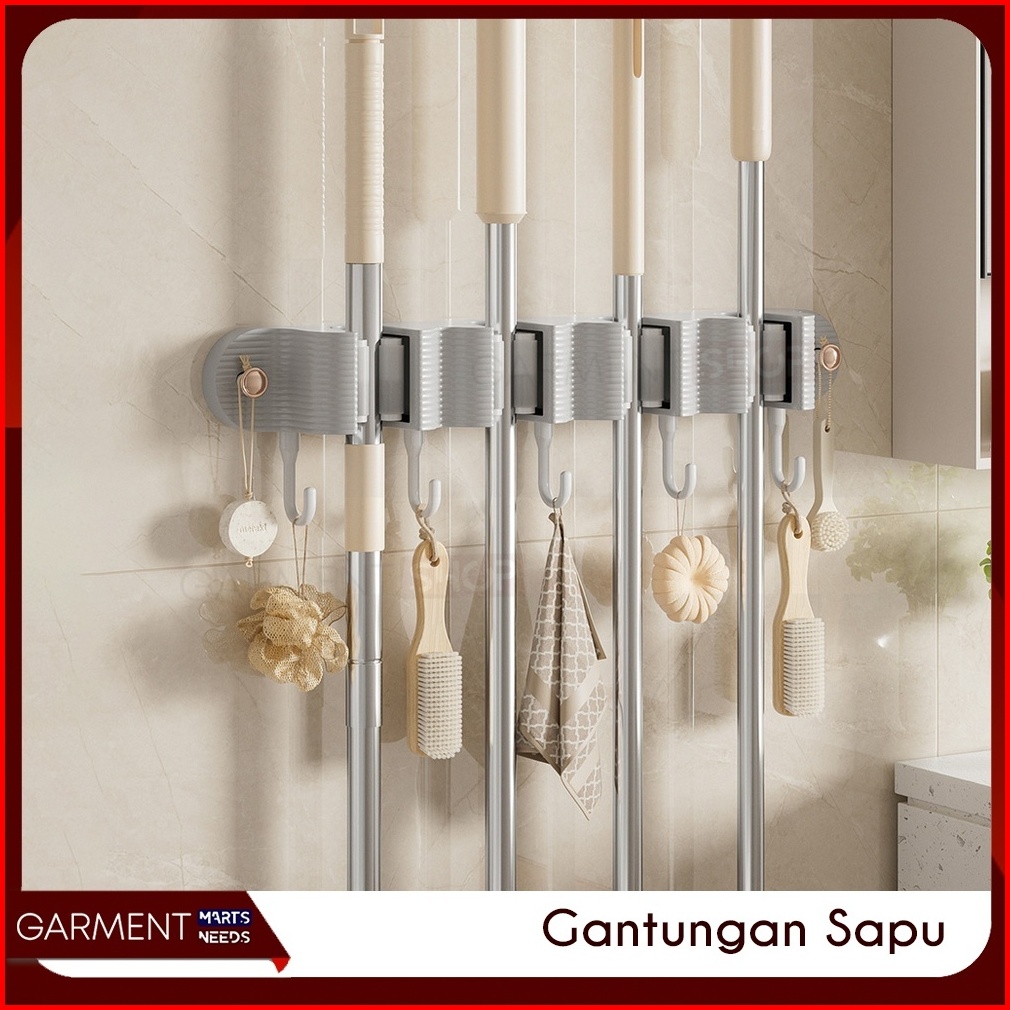 Holder Gantungan Sapu Pengki Rack Broom 4 Kait Penjepit Tempat Alat Pel Cleaner Bagus Estetik