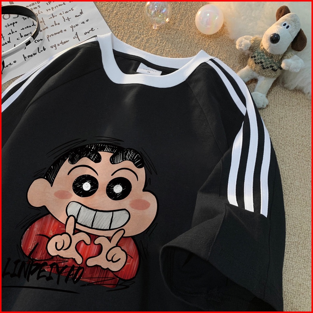 Forteid Cetakan Merek Trendi Retro Baju Oversize Motif Gambar Crayon Shin-chan Yang Lucu Korean Style Kaos Longgar Kaos