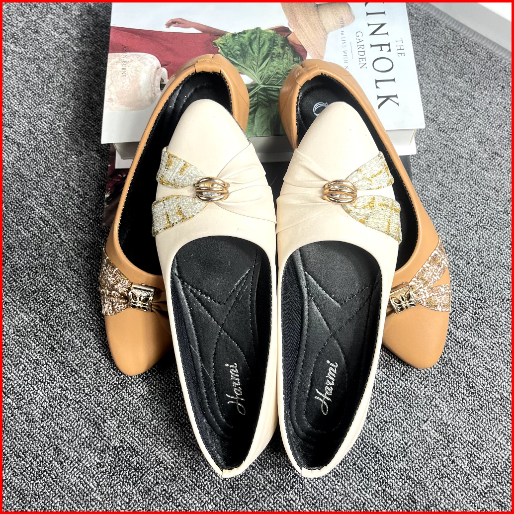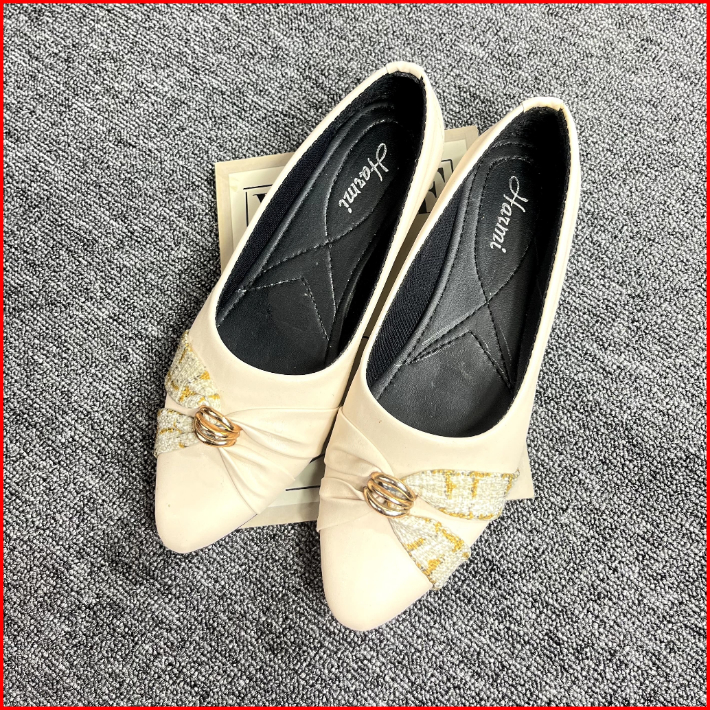 Mhr Grosir Safira Flatshoes Ballerina Premium Wanita Tali Datar Twotone Korean Kasual Cream Ash001