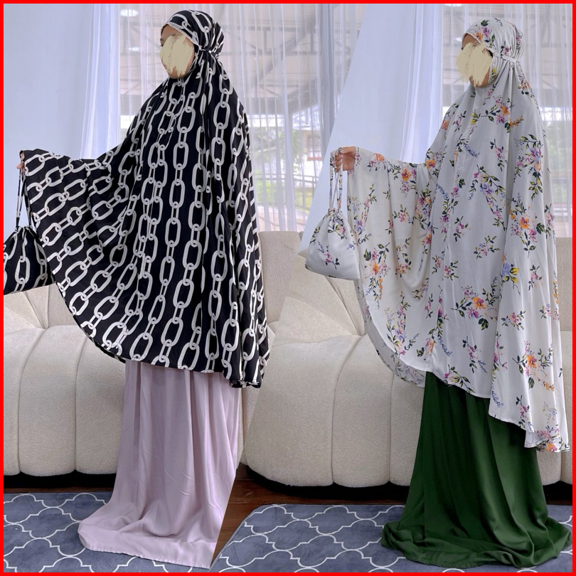 Mukena Rayon Dewasa 2 In 1 Mukena Rayon Premium Mukena Kombinasi Mukena Atasan Full Motif Bawahan Polos