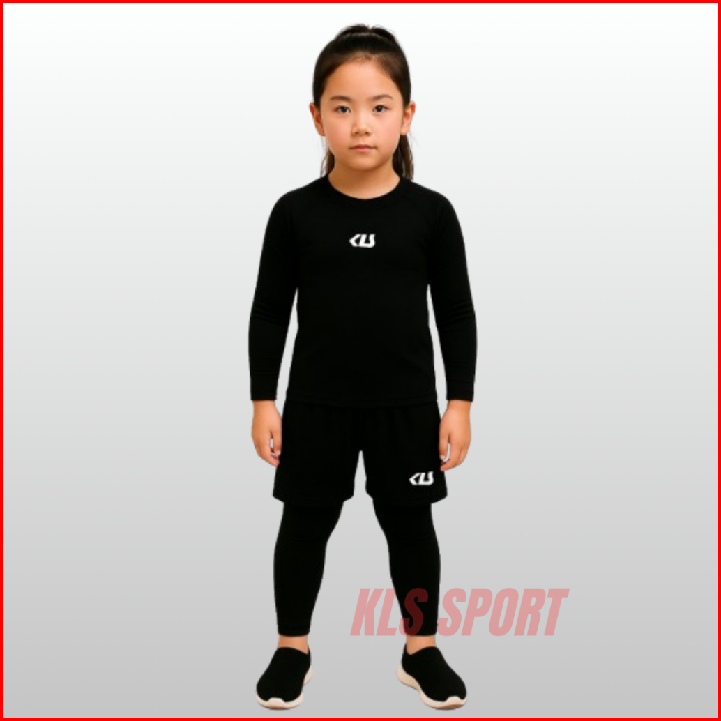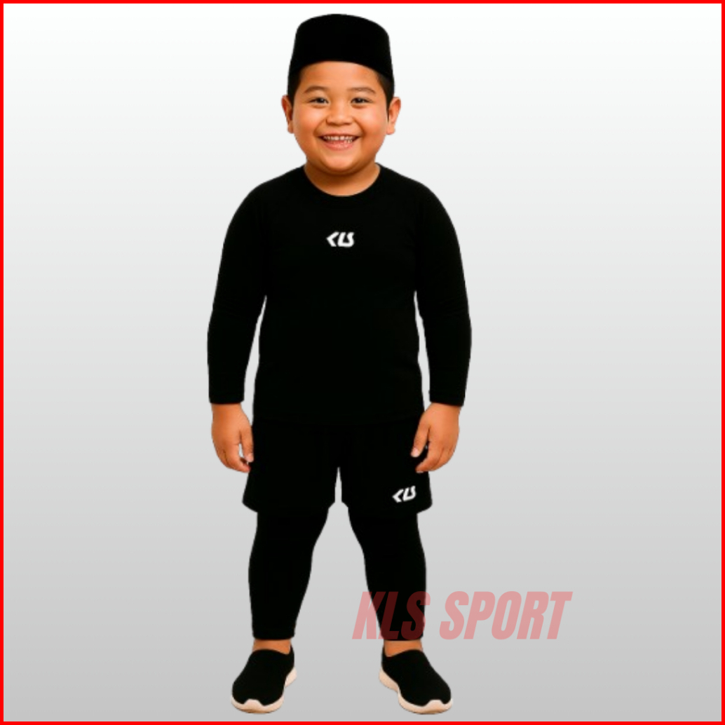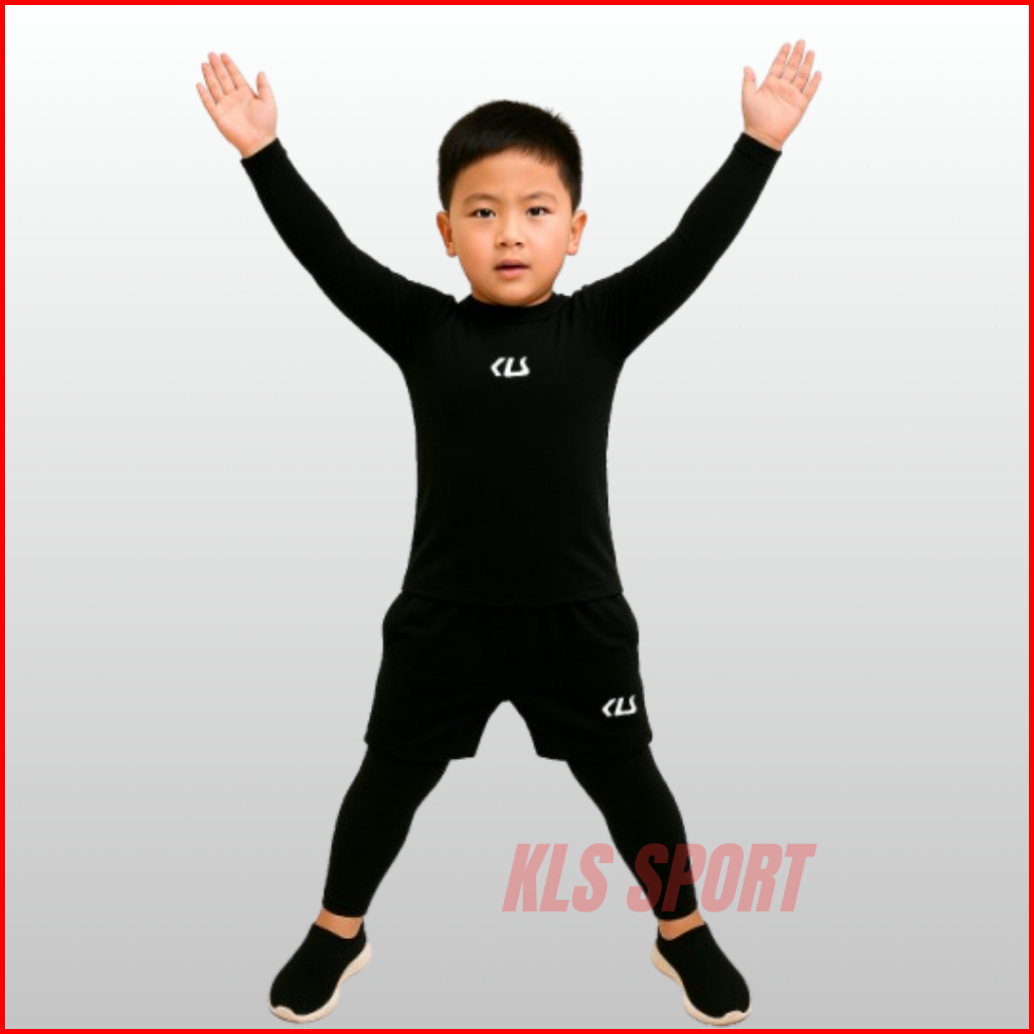 Kls Stelan 3in1 Baselayer Olahraga Anak 5-13 Tahun Manset Lengan Panjang Legging Dan Celana Futsal
