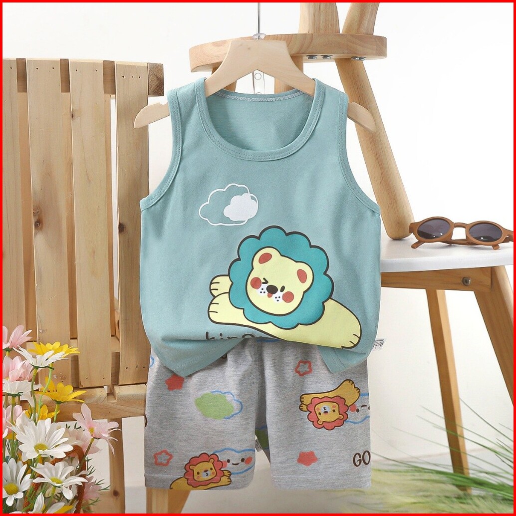 Niuniu Setelan Anak Singlet Tanpa Lengan Umur 0-5 Tahun Baju Bayi Katun