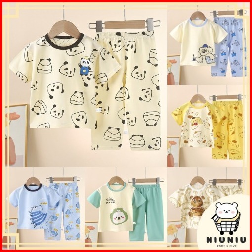 Niuniu Setelan Anak Laki-laki 0-5 Tahun Piyama Anak Baju Anak Perempuan Baju Pendek Dan Celana Panjang Katun