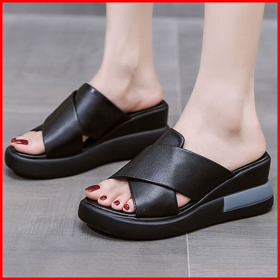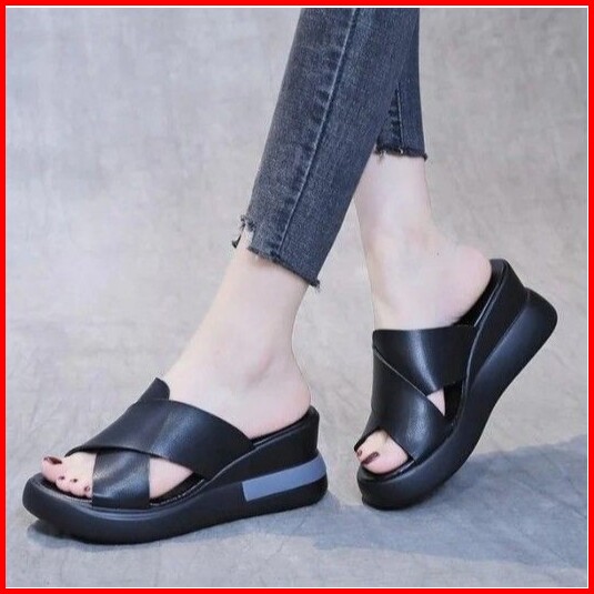 Sandal Wedges Wanita Hak 3cm Sandal Slop Wanita Kekinian Korean Style
