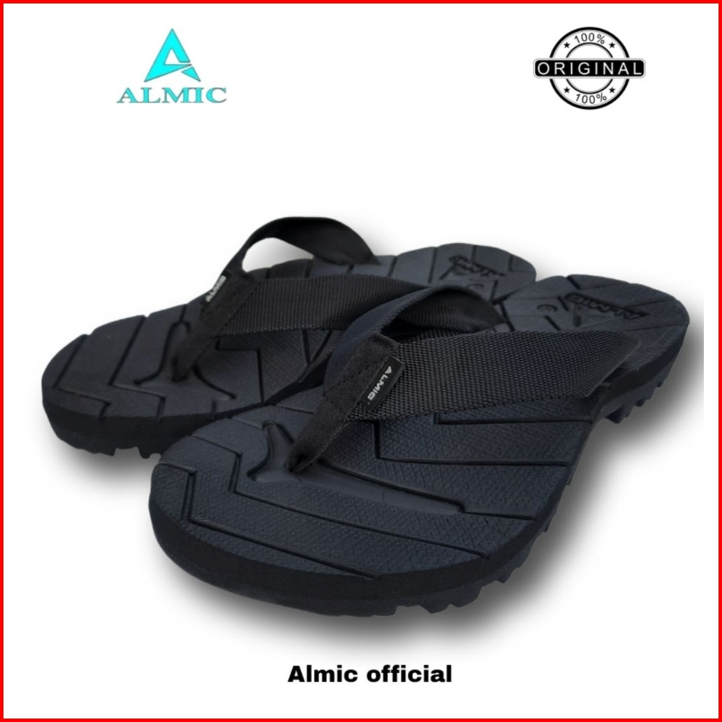 Almic-sandal Jepit Gunung Pria Edge Black Original Sendal Jepit Outdoor Cowok Cewek Dewasa Karet Hitam