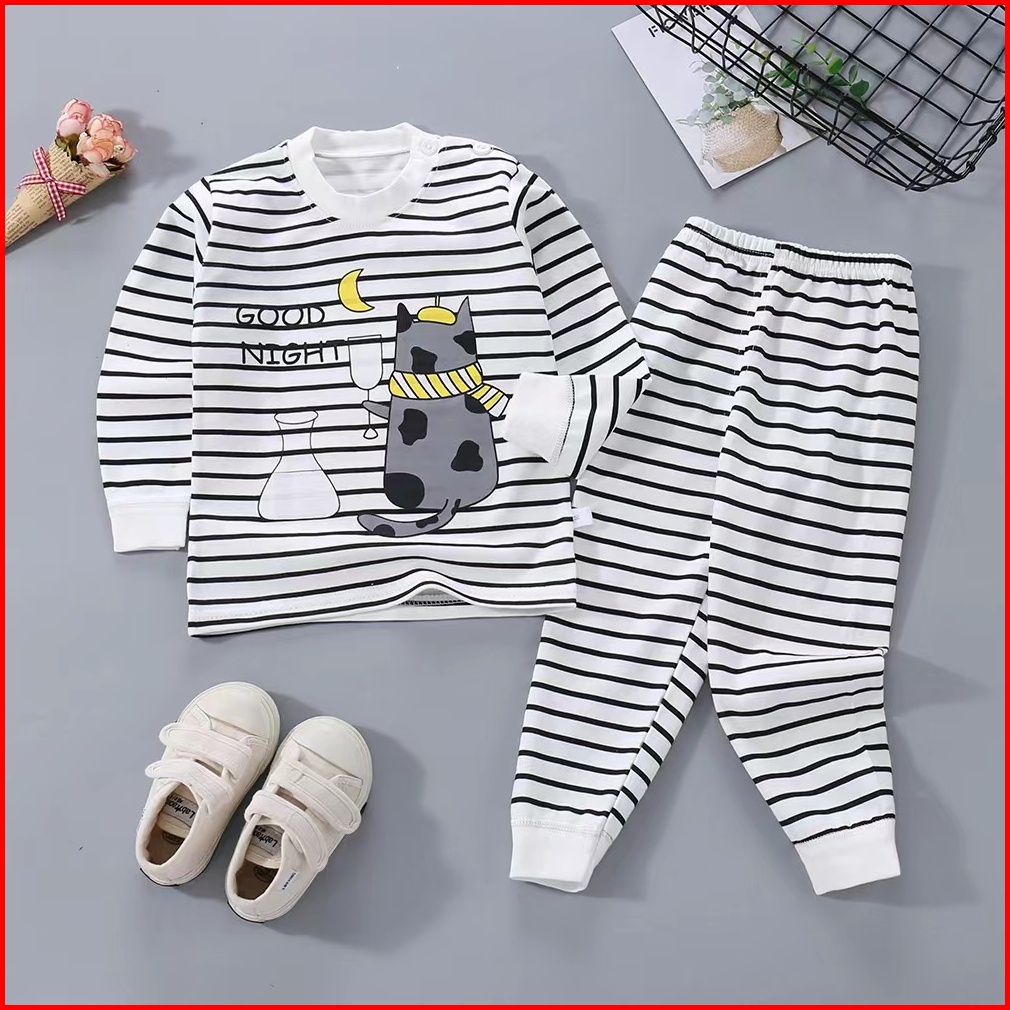 Niuniu Setelan Anak 0 - 6 Tahun Setelan Piyama Bayi Set Lengan Panjang Bahan Lembut Stelan Bayi