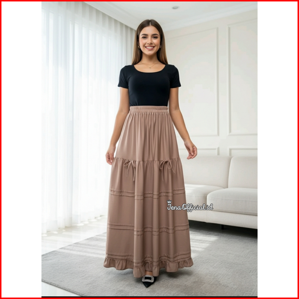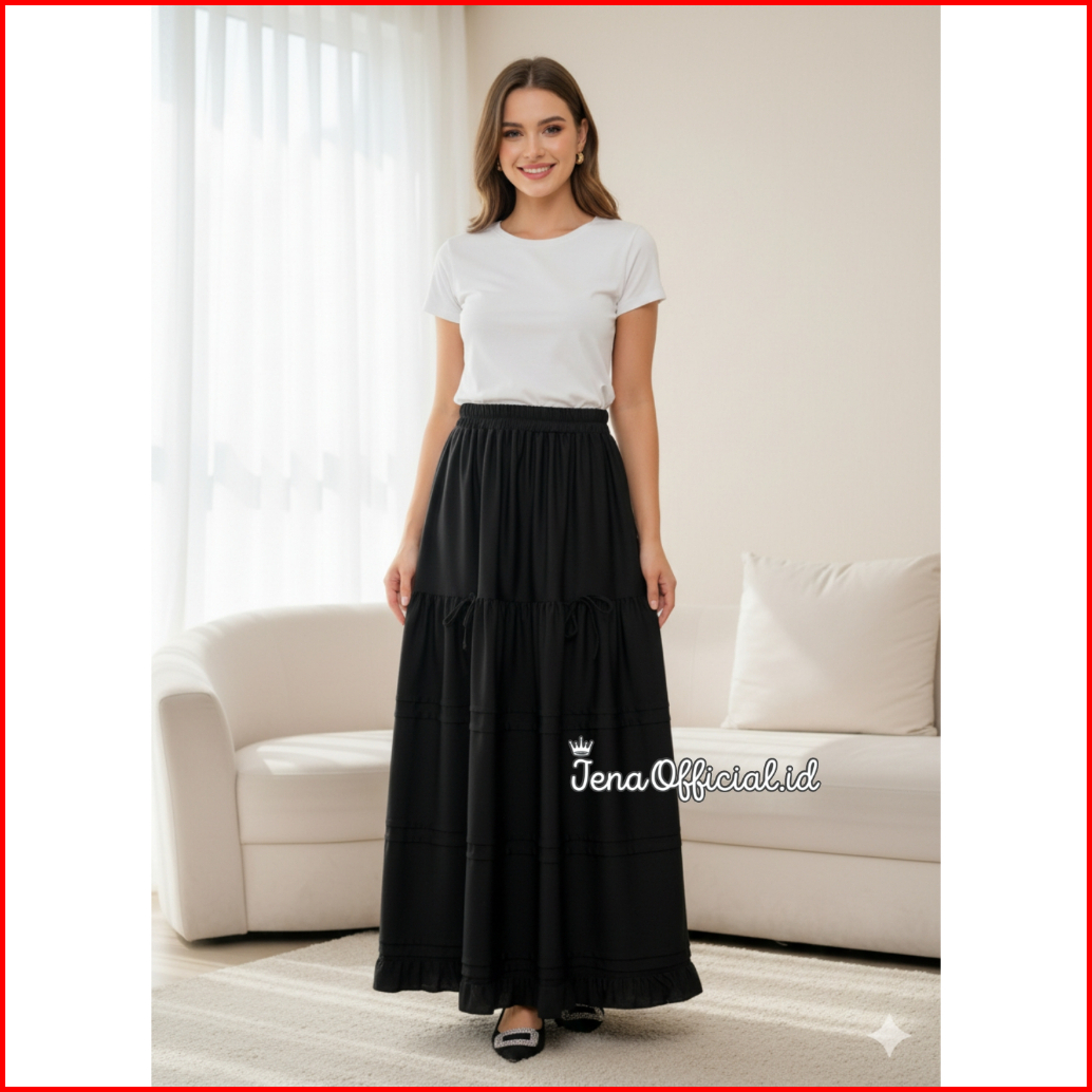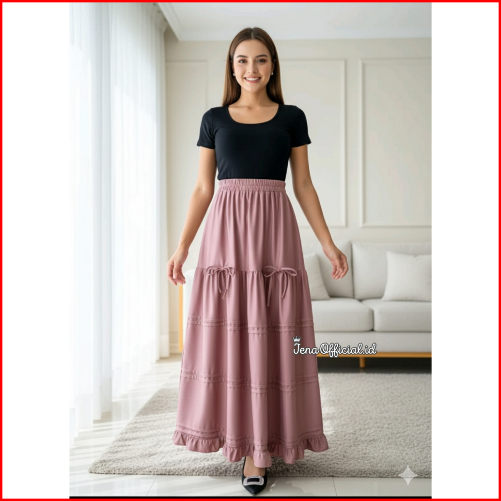 Meyra Skirt - Rok Korean Style Aksen Pita - Rok Korea Rempel Pita - Rok Wanita Panjang Aksen Pita