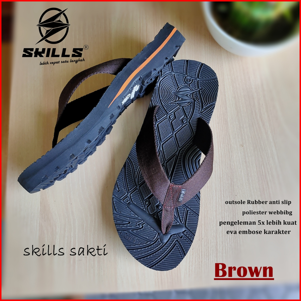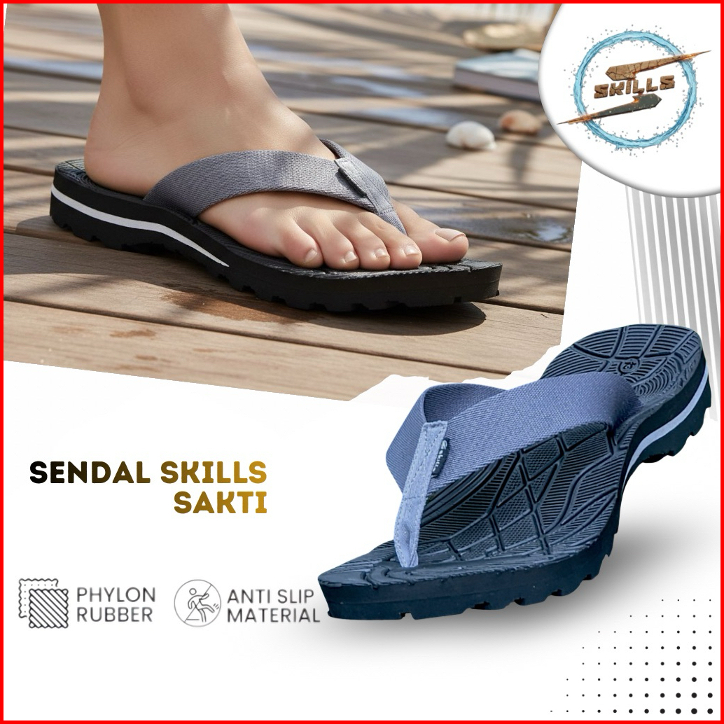 Skills Barqun Sakti Sandal Gunung Pria Sendal Casual Jepit Gunung Black Grey