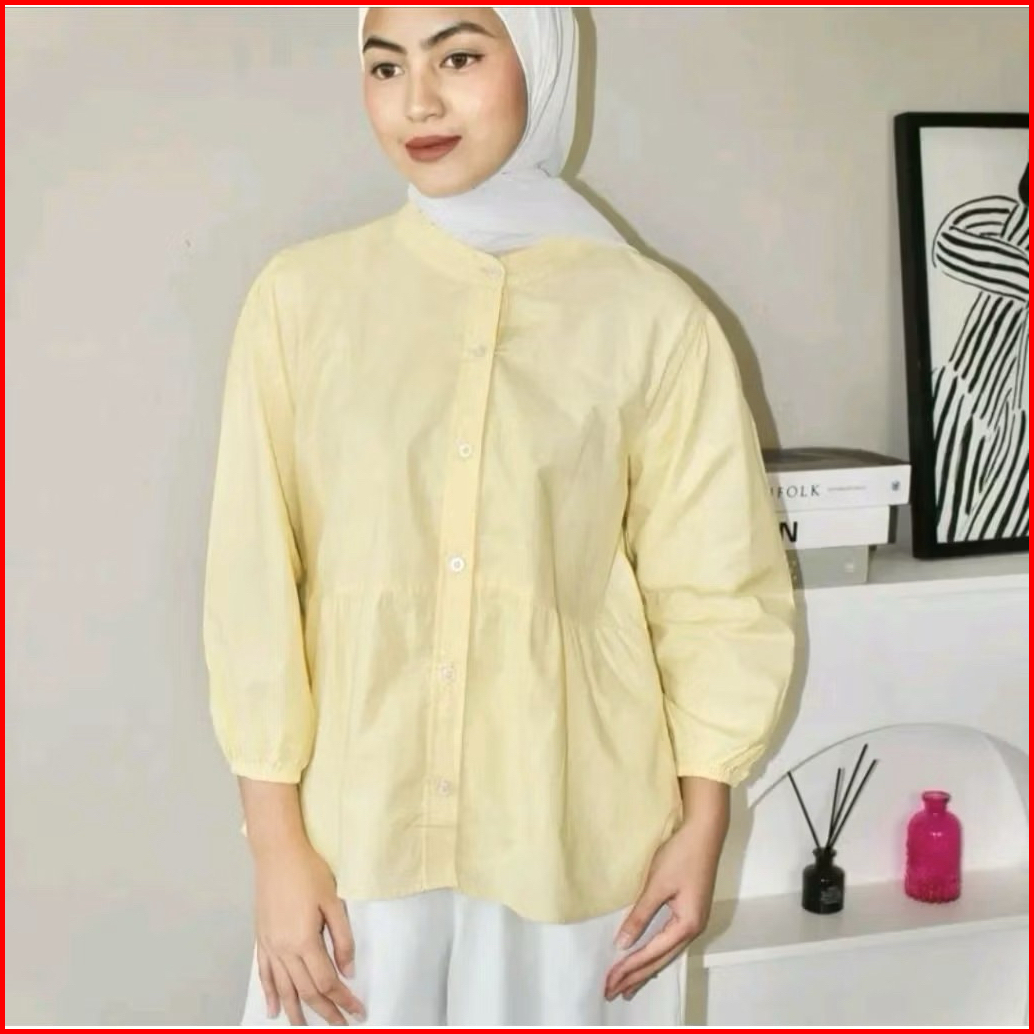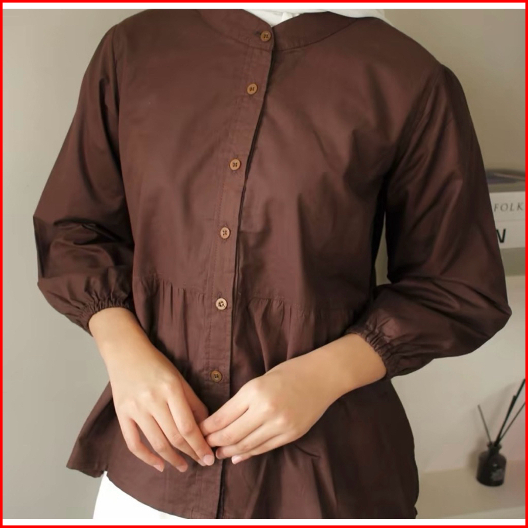 Kyren Blouse Atasan Wanita Katun Ruffle Blouse Semi Crop Lengan 3 4 Casual Korean Style