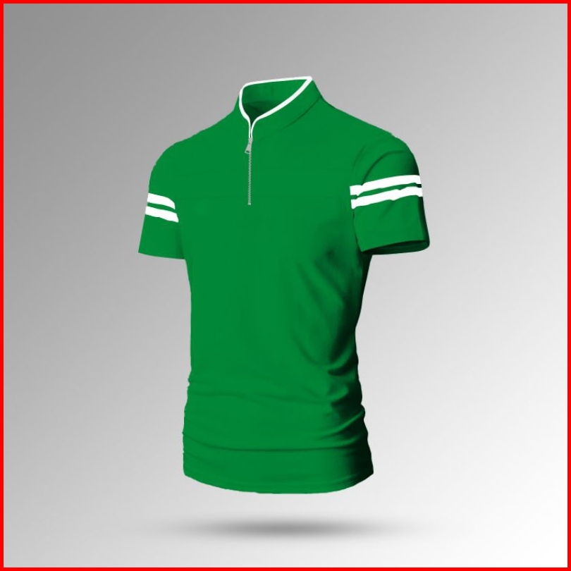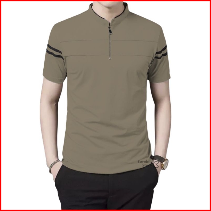 Kaos Kerah Shanghai Casual Sleting Lengan Garis