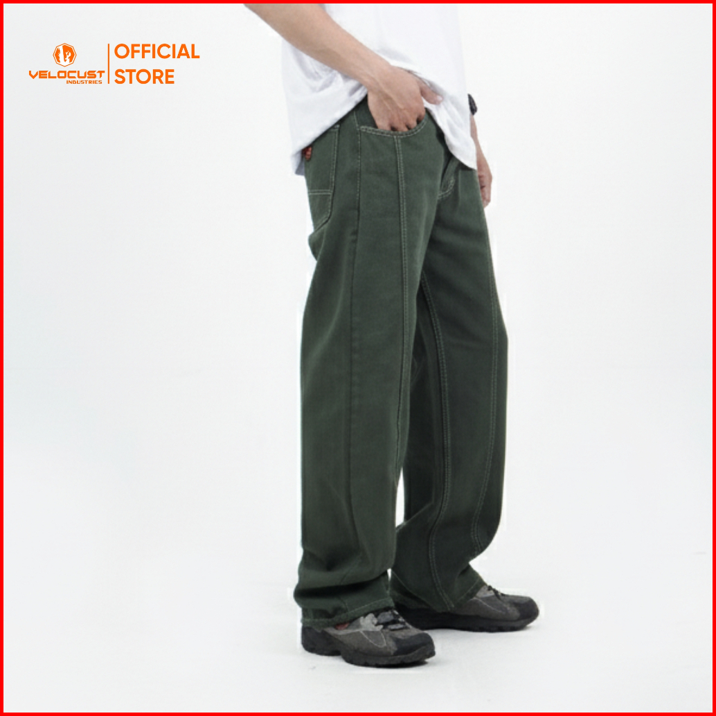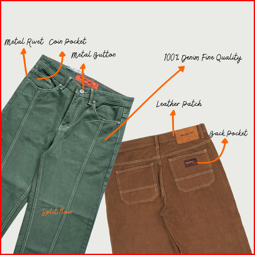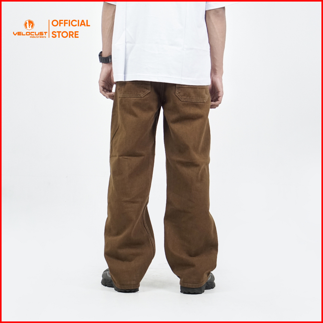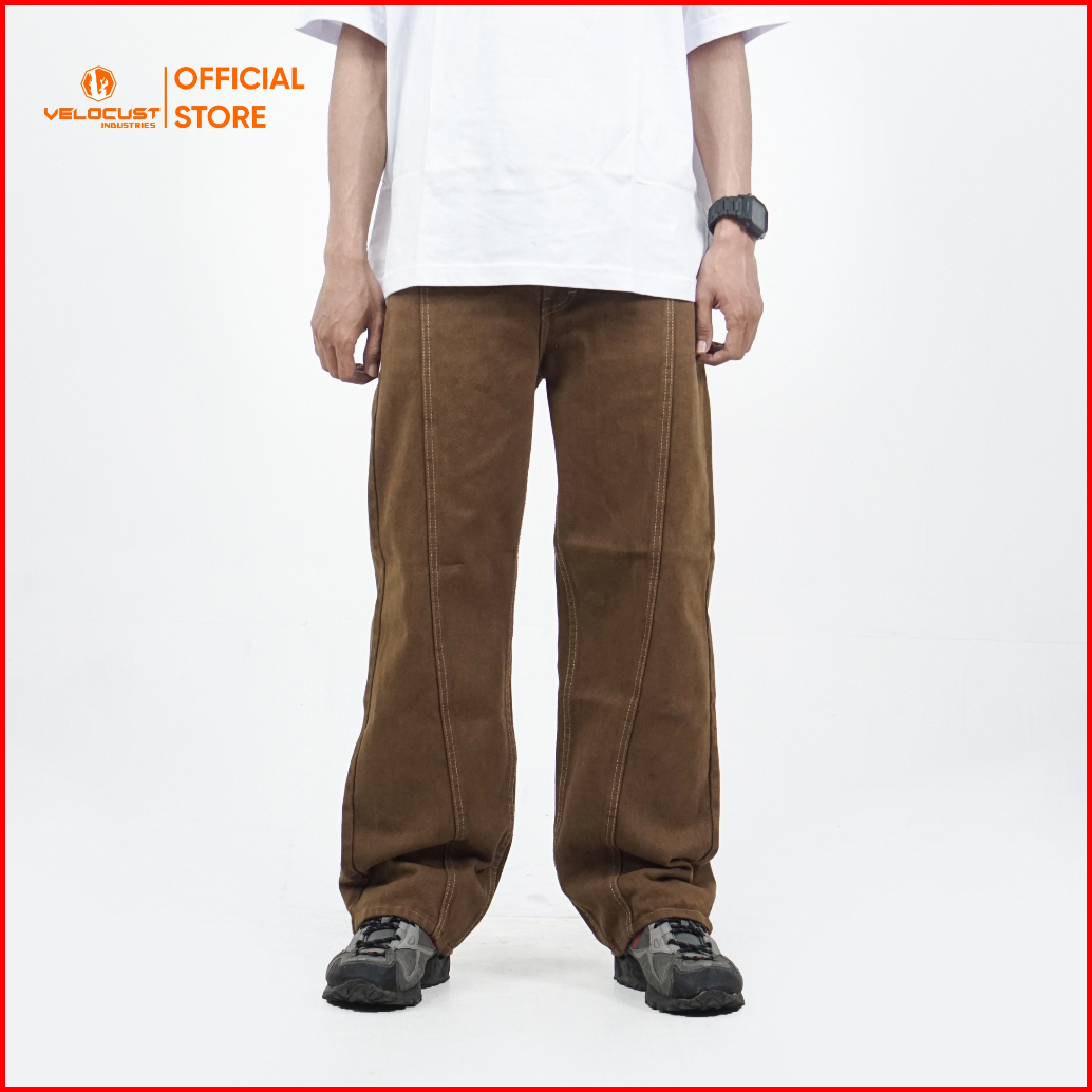 Velocust - Celana Panjang Jeans Pecah Pola Split Flow Baggy Barrel Denim Earth Tone