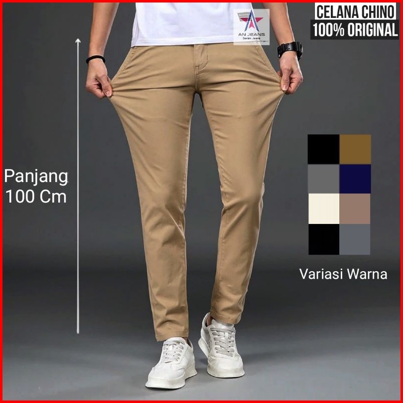 An Jeans - Celana Pria Chino Premium Panjang 100cm Mocca Slimfit