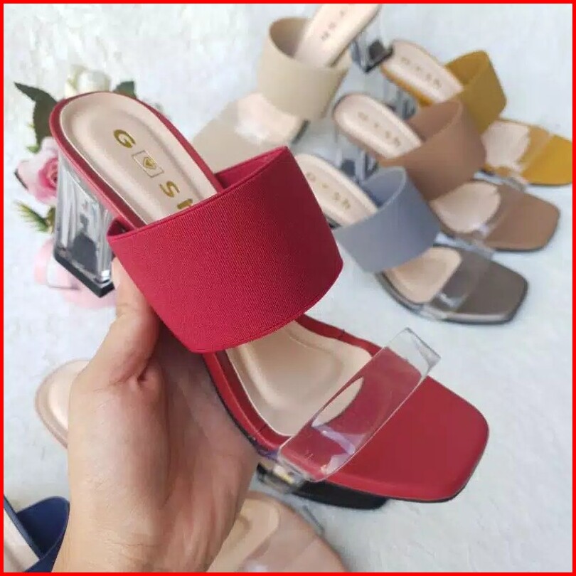 Heels Hak Tahu Kaca Karet 7cm Size 37-40