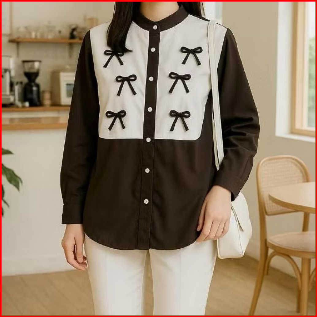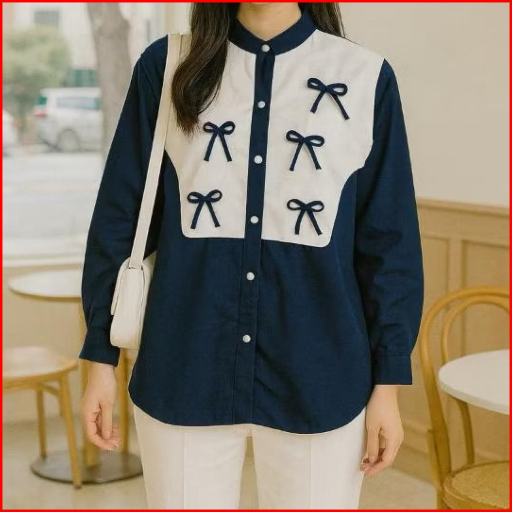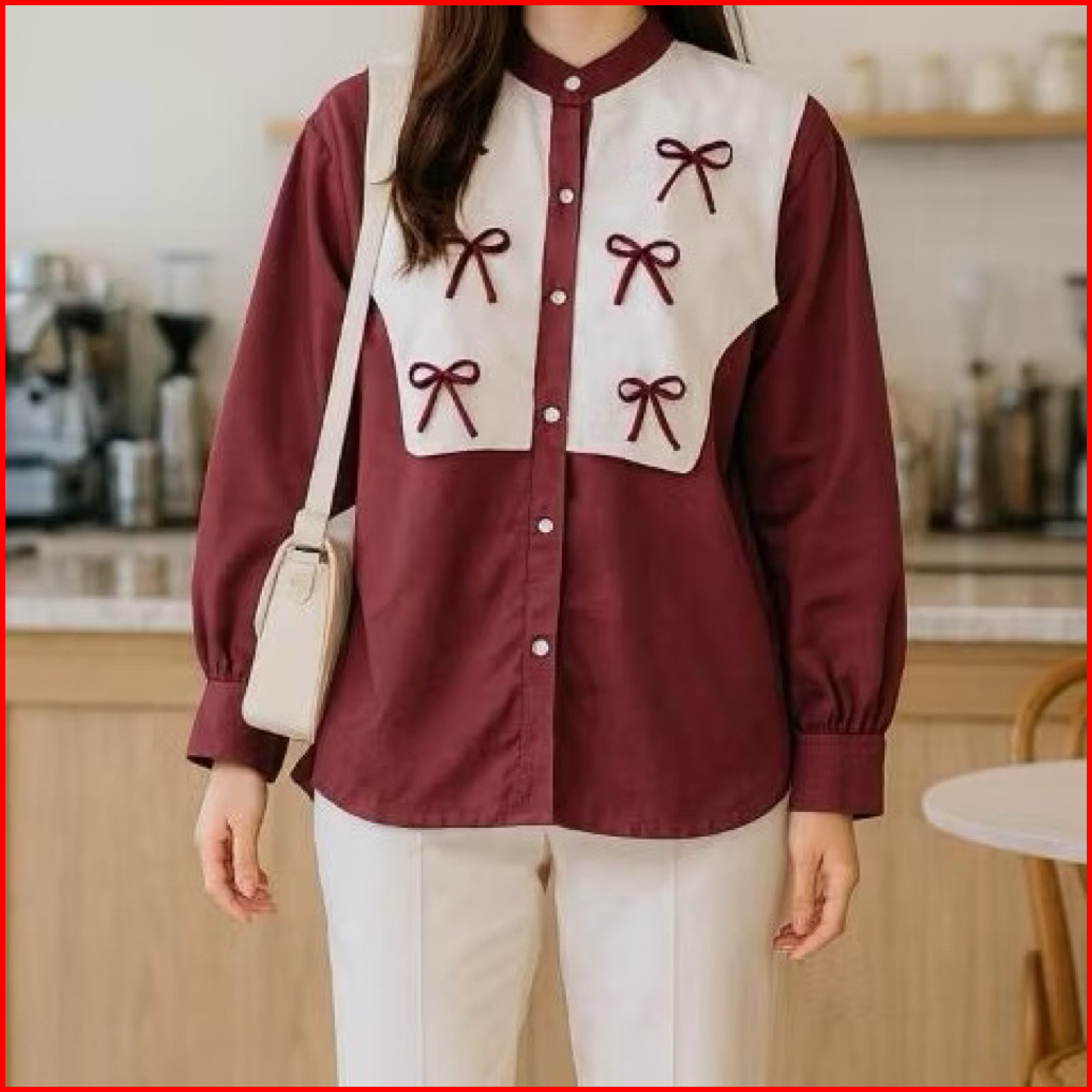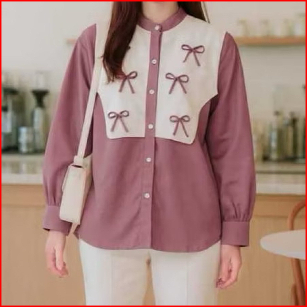 Bianca Blouse Vest Pita Bahan Katun - Atasan Wanita Rompi Kancing Variasi Pita Coquette