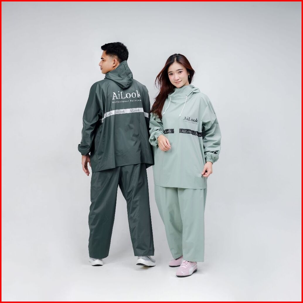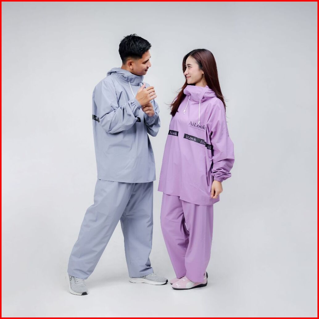 Ailook Jas Hujan Hoodie Exclusive Full Seal Press Anti Rembes Setelan Pria Wanita Bahan Pvc Karet