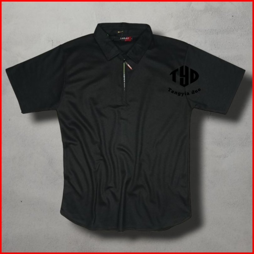 Tangyia Duo - Kaos Polo Shirt Zipper Kerah Polos Hitam M L Xl Xxl