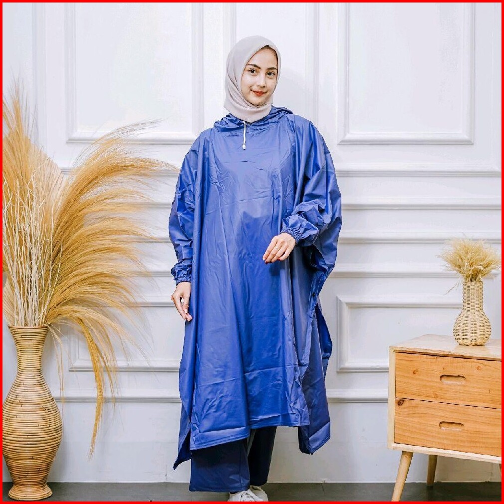 Jas Hujan Ponco Lengan Celana Jas Hujan Kelelawar Raincoat Mantel Murah Berkualitas Pria Dan Wanita Bahan Pvc Merah Biru