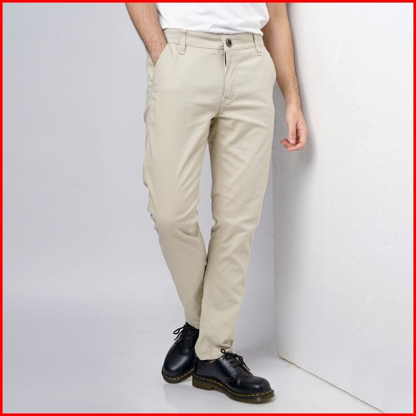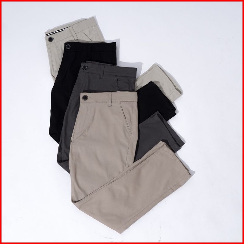 Best Seller Celana Panjang Bahan Chino Slim Fit Hitam Abu Khaki Cream