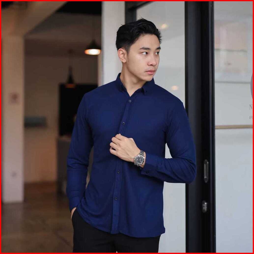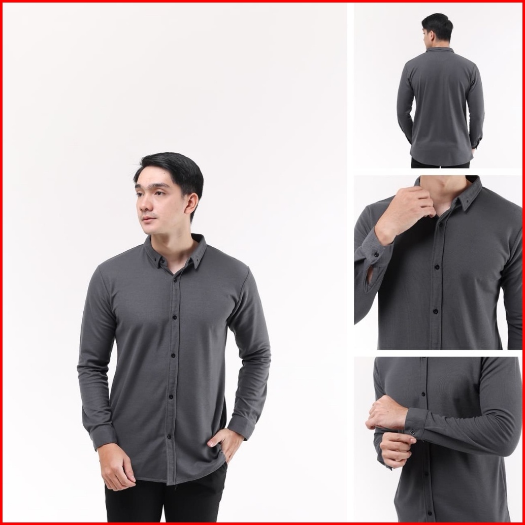 Kemeja Pria Lengan Panjang Lacost Pique Kemeja Casual Slimfit Hitam